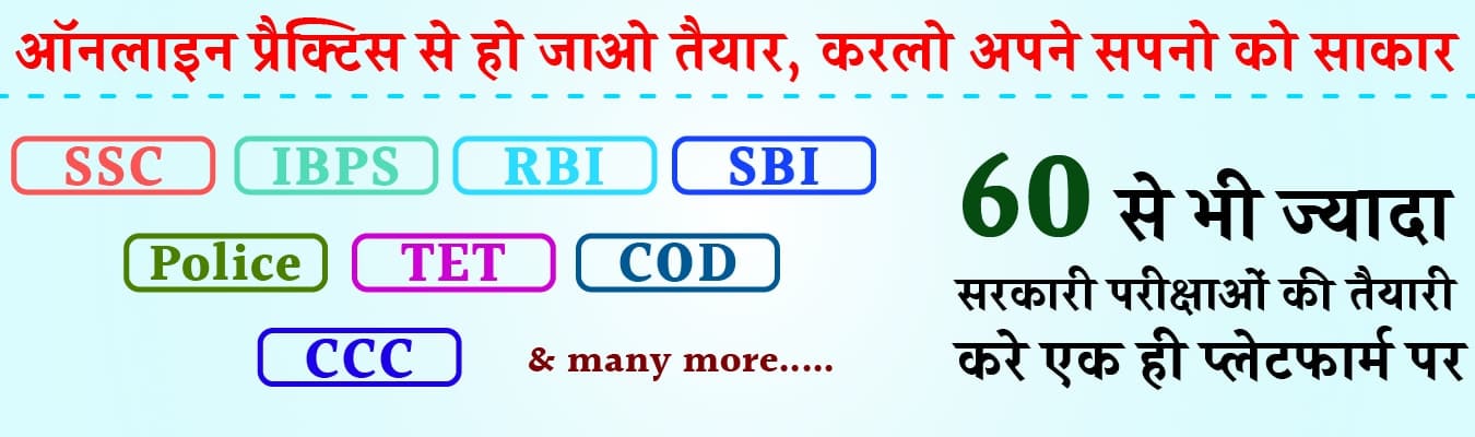 This is an online Test Preparation platform which is supported on the Computer and Mobile. We offer Mock Tests, Practice Questions, Tutorials and detailed Performance Analysis for more than 150 Central and State Level Government Exams, in Hindi and English medium.